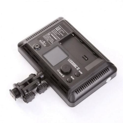 - 308 LEDs de brilho intenso - Painel de LCD grande e moderno; função de memória automática - Controle remoto wireless para ajustar brilho e temperatura de cor dos grupos A/B/C/D/E/F - 16 canais para evitar interrupções - Alimentação via bateria de lítica ou DC - Vários modos de uso: o 308C pode ser montado sobre o hot shoe de uma câmera, um stand de luz, um mini stand, etc. Além disso, você pode simplesmente carregá-lo em mãos - Ajuste flexível do ângulo de luz LED